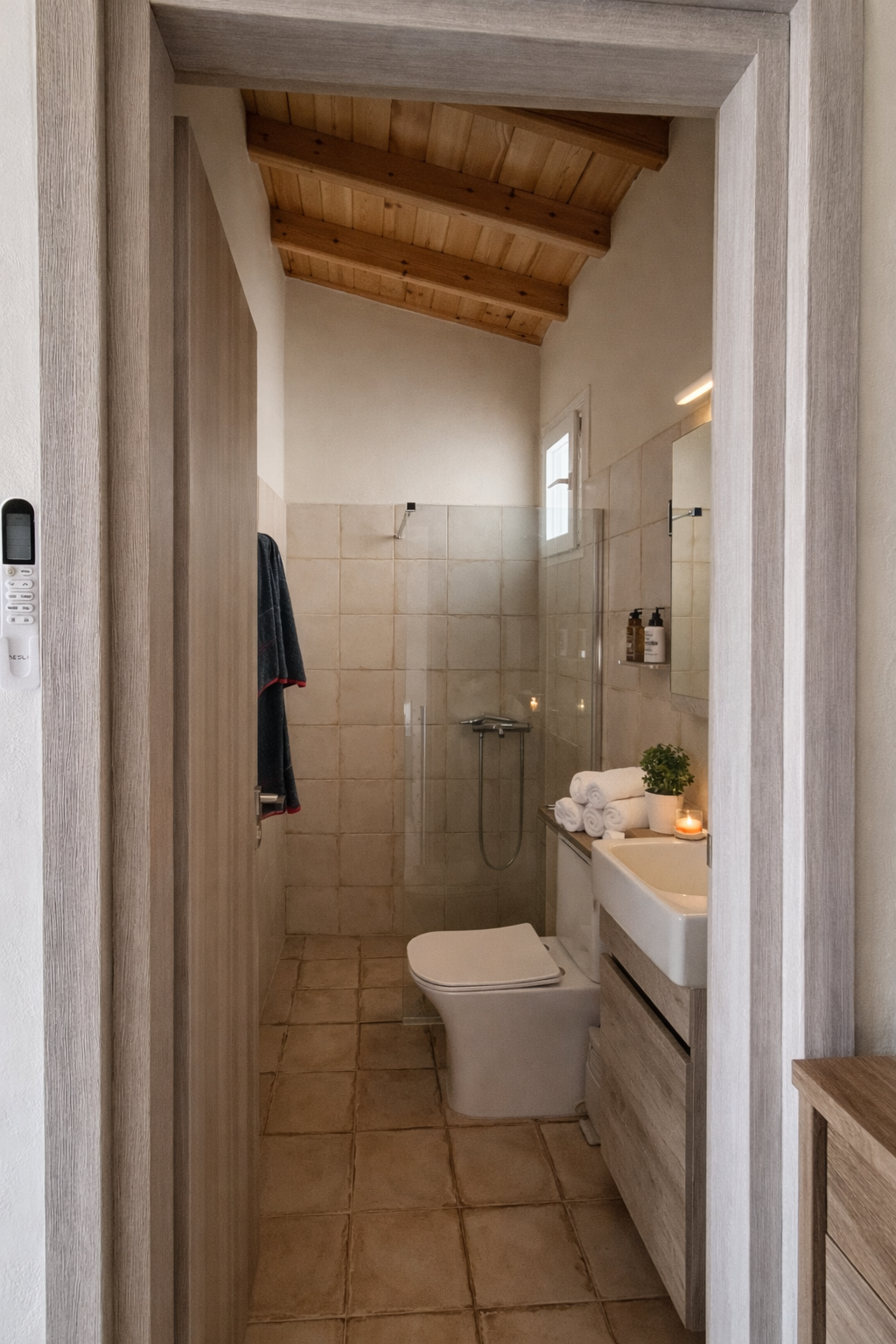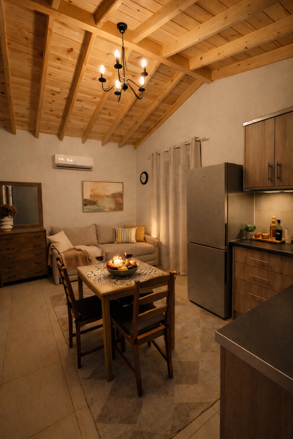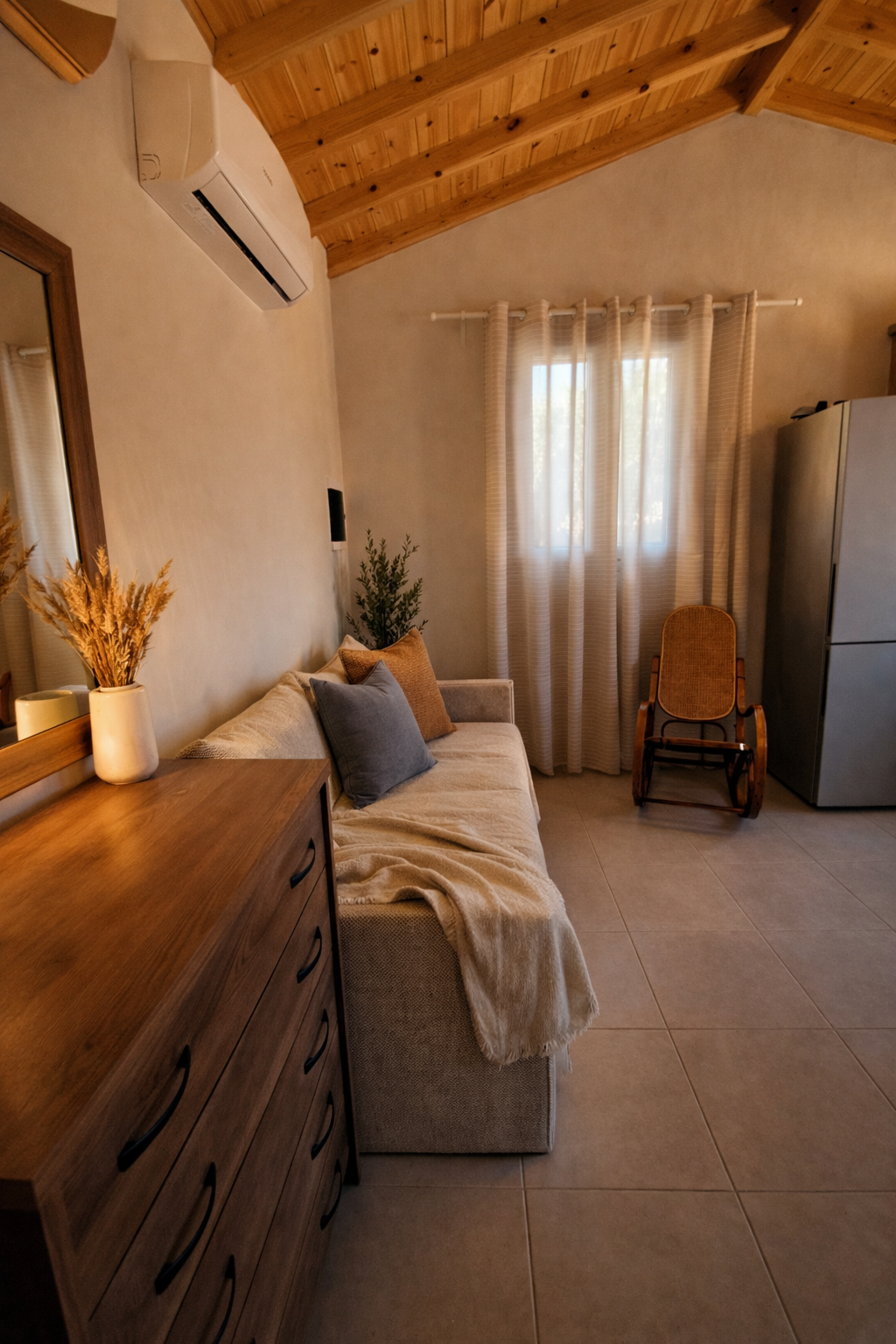 The kitchen is equipped with a coffee machine , kettle, and toaster, allowing you to prepare your meals and enjoy your holiday at your own pace. Outside, the private courtyard with outdoor seating and dining area provides the perfect setting for peaceful mornings and relaxed evenings in an authentic island atmosphere.