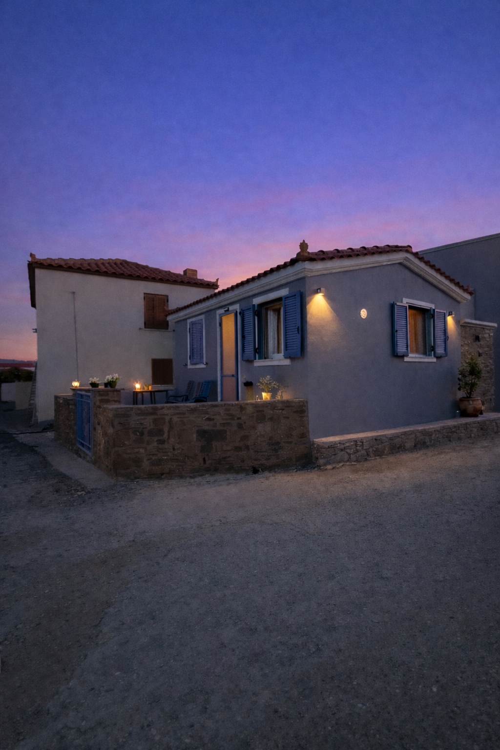 Just 10 km from Moudros and 40 km from Myrina, it offers peace, privacy and an authentic island atmosphere, only a short distance from the sea.